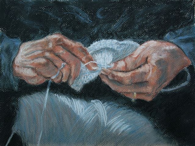 in this life, every memory is looped, interlocking with yarn using sharp needles,
