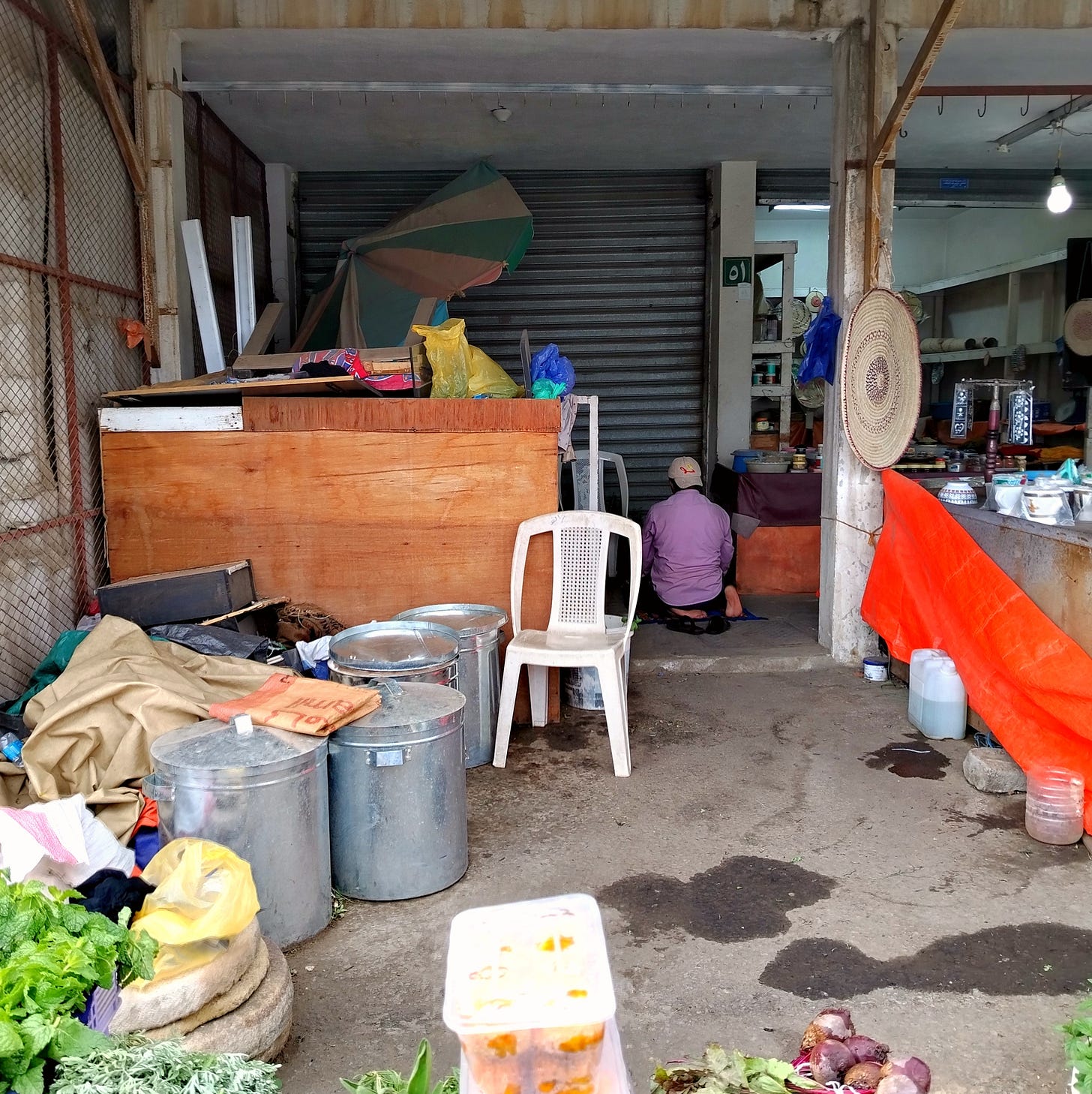 My father is using his digital camera to take pictures of the people and shops in the street, taking advantage of the van stopping suddenly due to blockages. Pictures of the sabzi wala and the oddly symmetrical shops with wires coming out everywhere.